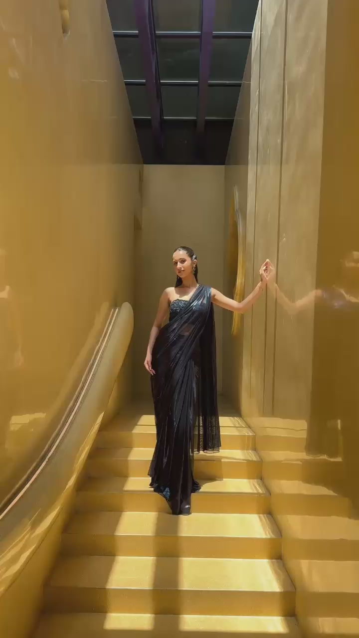 This refined ensemble features a pre-stitched saree designed for effortless draping and graceful movement. Paired with a blouse that showcases pure hand embroidery, the look is elevated by intricate craftsmanship and delicate detailing. The blouse serves as a statement piece, balancing tradition with couture finesse. Ideal for occasions that call for understated luxury and artisanal charm.